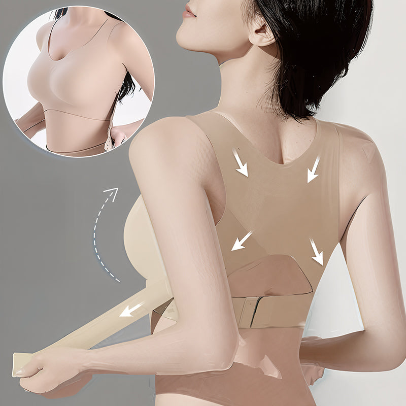 The cross-back straps gently pull your shoulders back to improve alignment, reduce slouching, and support a naturally lifted posture throughout the day.