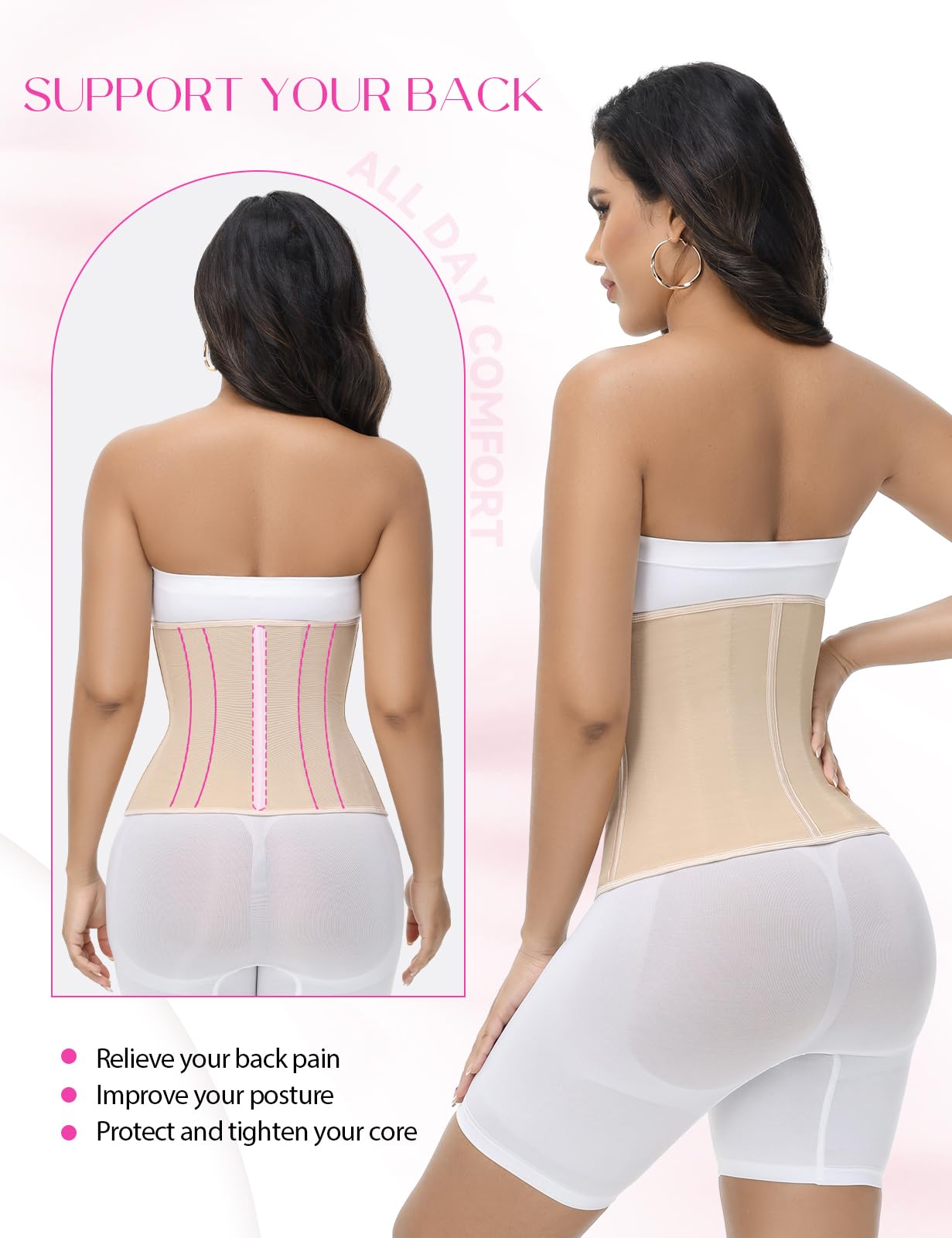 1. The waist trainer contains latex, which may cause allergic reactions. If you're allergic to latex or unsure, please consult your doctor before use.